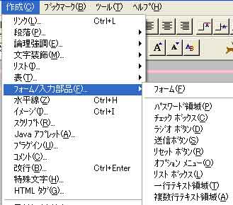 | 「作成」→「フォーム/入力部品」画面 |