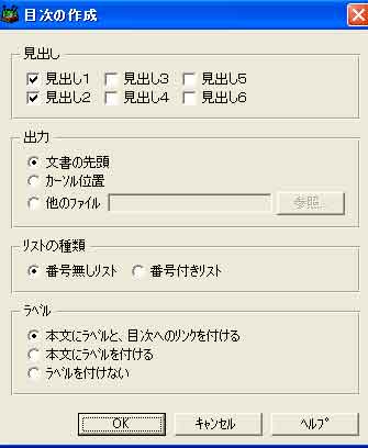 | 「ツール」→「目次の作成」画面 |