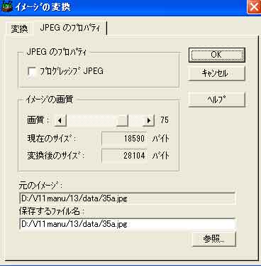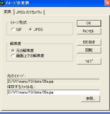 | 「ツール」→「イメージの変換」→「JPEGの変換」画面 |