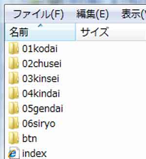 | (1)01sendoki〜16genpeiまでを名前順にソートしています。 (2)フォルダ名に01〜16を付したので、歴史順に並んでいます。 (3)非常に利用し易い配列になっています。 |