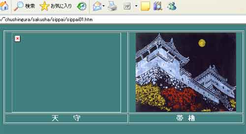 height="196" width="267" border="0" hspace="15"></TD> <TD><IMG src="obi yaguras.jpg" height="195" width="246"></TD></TR> <TD align="center"><B>天 守</B></TD> <TD align="center"><B>帯 櫓</B></TD></TR> |