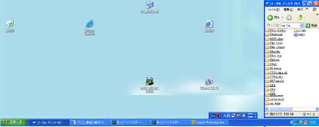 | 写真(2)は、「マイコンピュータ(マイコン)」を右側の定位置の画面です。 (1)パソコンは、常に、マイコンをデスクトップの右側に表示して始まる。 |