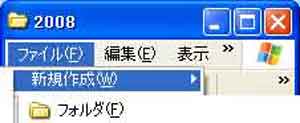 | 写真(4)は、「新規作成」画面です。 (1)「ファイル」→「新規作成」→「フォルダ」(「2008」フォルダ内に新しいフォルダを作成します) |