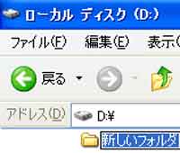 | 写真(2)は、「新規作成」画面です。 (1)「D:」ドライブを開く (2)「ファイル」→「新規作成」→「フォルダ」(「D:」ドライブ内に新しいフォルダを作成します) |