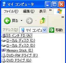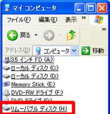 | 写真(2)は、「リムーバブルディスクの追加」画面です。 (1)デジカメと接続した時の「マイコンピュータ」画面です。 (2)写真(1)と比較すると、「リムーバブルディスク」が追加されています。 (3)「リムーバブルディスク」(Removable Disk)とは、ドライブ(駆動装置)からディスク(記憶メディア)を取り出したり、入れ替えたりできる記憶装置のことです。代表的な「リムーバブルディスク」には、フロッピーディスクやMO、メモリーカード(メモリースティックやSDカードなど)などの記憶メディアがあります。 |