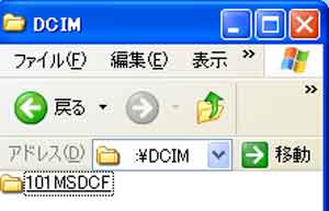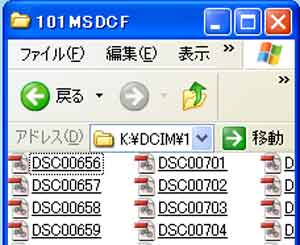 | 写真(4)は、「DCIMを開いた」画面です。 (1)日本電子工業振興協会の規格に、「DCIM」は「Digital Camera IMages」の略とあります。 (2)どのデジカメでも共通の表示です。 |