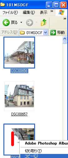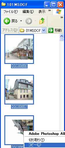 | デジカメ写真をマイコンのフォルダに取り込む(1枚、選択、全て) |