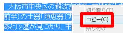 (1)ネット(サイト)上の見出しをドラッグ→クリック→「コピー」