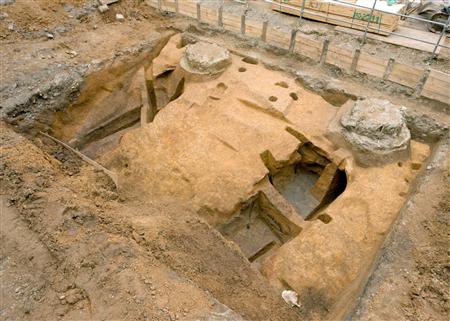| 難波宮跡で見つかった5世紀前半の須恵器窯跡(大阪市博物館協会・大阪文化財研究所提供) |