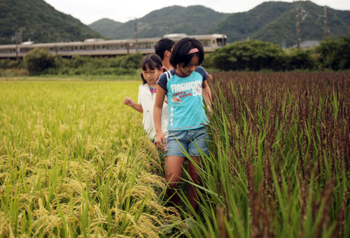10月初旬に未来米を収穫し、古代米は11月に刈り入れる予定。収穫祭で餅やおにぎりにして試食する。夏休み中も雑草取りの世話をした5年生の土井政範君(11)は「未来米は色が白くておいしそう」と初めて食べる味を楽しみにしている。