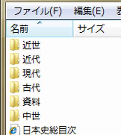 | (1)原始〜現代までを名前順にソートしています。 (2)歴史順ではなく、あいうえお順に並んでいます。 (3)非常に利用し難い配列になっています。 |