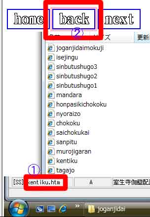 (4)現在位置(リンク元)の「kentiku.htm」から1つ戻るファイル名(リンク先)を選択します。