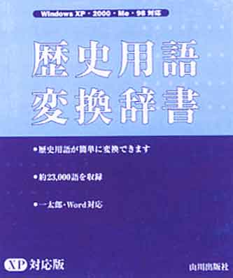 | 一発に変換とは、「ありすがわのみや」と入力すると一度で「有栖川宮」が表示されます。「たるひとしんのう」と入力すると一発で「熾人親王」と変換されます。 CDをマニュアルに従って、インストールすれば、既存の単語登録と同時に、歴史用語が使用できます。 | |