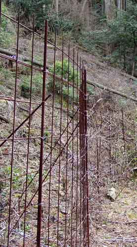 | やっとイノシシ対策の柵まで辿り着く 高さ2メートル以上の柵にはムサク(無策) | ||||||