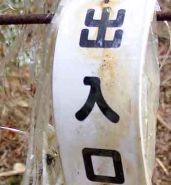 神の恵か、「年配の地元に人」に話が聞けました。「(2メートル以上の)柵のどこかに、出入口と書いた目印があるはずだ」と教えられました。