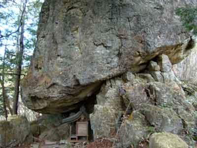方向は違っても、1つの巨岩の下に、神仏が同居していました。まさに、神仏習合の姿でした。 |