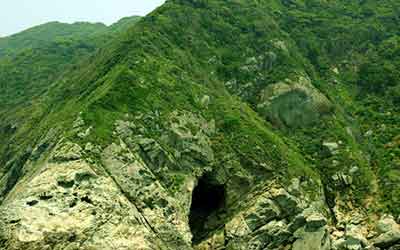 沖ノ島の3期で見るような、ここでは、「半岩陰・半露天に、石で区画した祭壇を設けた形跡」は見当たりません。 |