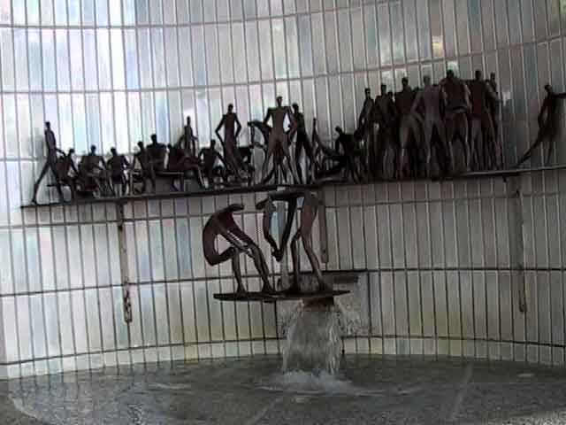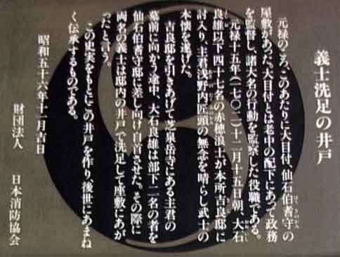 隣の日本消防会館入り口には、「赤穂義士足洗の井戸」のモニュメントが作られています。 |