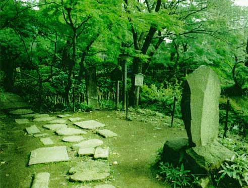 毛利下屋敷の池の畔には、赤穂義士切腹の碑がありましたが、現在は取り払われています。 |