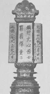 位牌の右に「鉄肝元心居士」(元禄十六年二月四日磯貝重良左衛門)、その左に「菊園禅童子」(正徳三年九月廿三日)とあります。