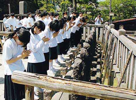 修学旅行で赤穂義士ゆかりの泉岳寺に参拝した有年中生徒