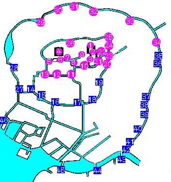 外郭の周囲は16kmになります。 |