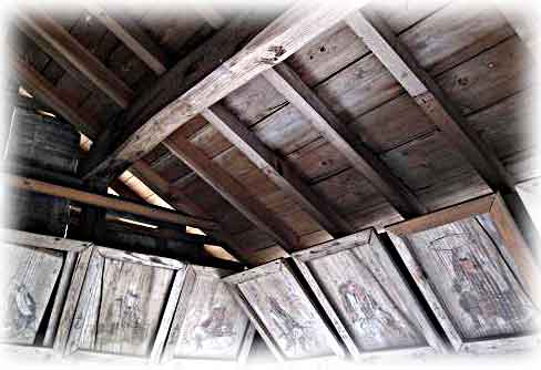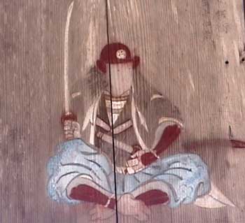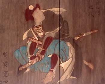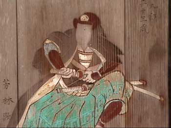| 黒尾の山裾に祀られた小社で、祭神は須佐之男命である。境内には嘉永2年(1849)に奉納された義士画像図絵馬がある。絵馬は49面の人物絵馬と1面の奉納額で、絵師は京狩野派の菅原永得である。絵馬は全体として画面の状態が悪いものも多いが、享年や辞世の句も記されているため、四十七士のうち46人が判別可能で、吉田忠左衛門の絵馬が欠落しているようである。義士に加えて矢頭長助・萱野三平・橋本久蔵の3人が「義士一列」として加えられている。旧赤穂郡内に所在する24の義士画像図絵馬のうち最も古い絵馬であり、赤穂市指定文化財となっている(赤穂市教育委員会『文化財をたずねて』より)。 |