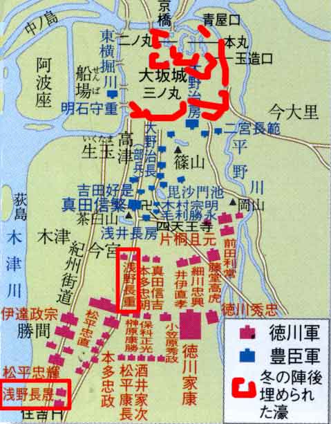 | 大坂冬の陣の布陣図(出典:山川出版社『詳説日本史図録』) | ||||||||||||||||||||||||||||||||||||||||||||||||||||||||||||||||||||||||||||||||||||||||||||||||||||||||||||