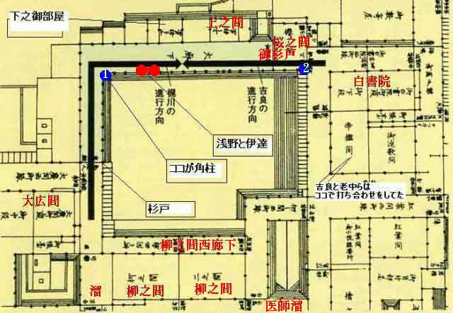 | 松の廊下地図を検証━中学生3人の考え (1)背後からでなく正面が正しい (2)井沢氏の卑怯者説を否定 |