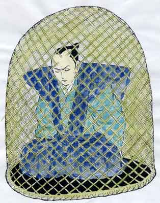 | 写真A:唐丸駕籠で運ばれる浅野内匠頭(挿絵:寺田幸さん) |
