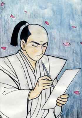 | 写真B:辞世の句を各浅野内匠頭(挿絵:寺田幸さん) |