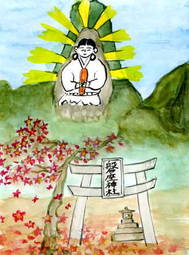 伊邪那岐命(いざなぎのみこと)は、黄泉(よみ)の国(死の国)の住人となった妻の伊邪那美命(いざなみのみこと)を訪ねました。しかし、変わり果てた妻の姿を見た夫は、恐ろしくて逃げ帰ります。妻は、必死な形相で追いかけます。夫は、黄泉の国と現世の国の境にある黄泉比良坂(よもつひらさか)に大石を置きました。それ以降、黄泉の国と現世の国との往来が出来なくなりました。