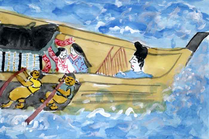 菅原道真が陸に来て、南の方を見ると、海の水が大きくみちひきする様を見ました。