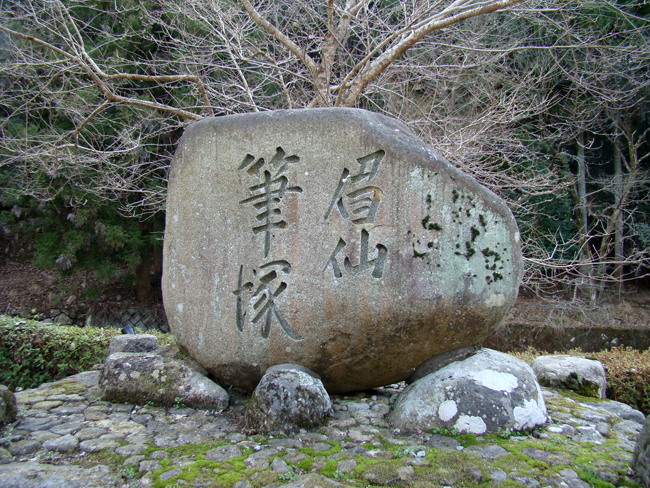 福田眉仙の筆塚には、多年愛用した筆十本と墨が納められています。眉仙は、故郷の菩提寺である感状山光専寺を度々訪れ、多くの襖に作品を遺しています。