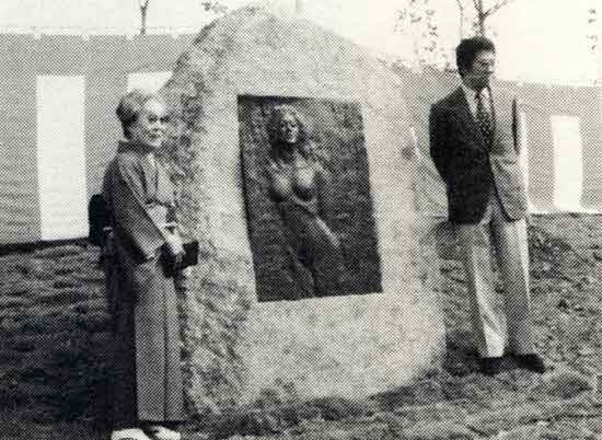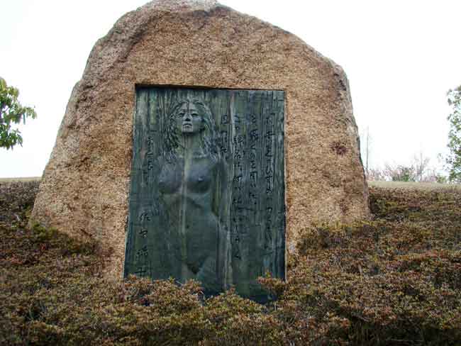 | ブロンズレリーフは洋画家安岡明夫氏。 文は稲子が 『素足の娘』 より自選、自筆である。 |