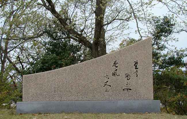 この碑銘は「野火燃エテ尽キズ 春風吹ケハマタ生ズ」と読む。原詩は白居易(楽天)の詩の一節で、(生いしげる野原の草は)野火もそれを焼きつくすことはできず、春風が吹けばふたたび生いしげってくる−というものである。