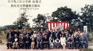 水守亀之助の一生は文学一途の生涯であった。自然派として文壇の第一歩を印しながら、その世界にのみ安住することができず、ロマン主義に揺れ、歴史小説に行き、プロレタリア文学を指向したこともあり、少年少女小説や大衆小説、さらには戯曲や推理小説を書いたこともありました。
