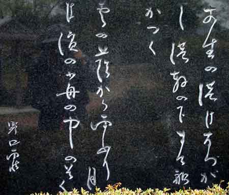 歌詞は全部で十五節あり、詩碑に刻んでいるのは、そのうちの三節と最後の十五節。書は雨情直筆。 |