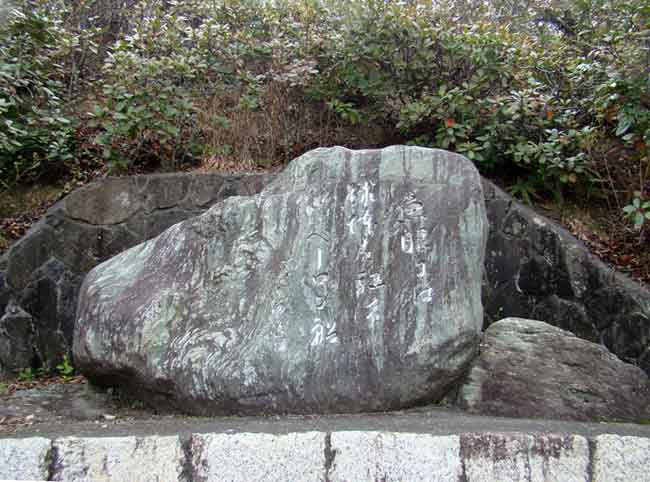 丸山海道は大正十三年四月京都に生まれ、幼少より父鈴鹿野風呂 (ホトトギス同人) の命で句作を始める。昭和四十六年三月野風呂が赦死れて後、「京鹿子」 の主宰となる。昭和五十八年より毎年相生市俳句祭の選者、講師として連続指導にあたる。平成五年五月これを記念して、京鹿子同人・会員および相生ペンの会、相生市文化協会有志により建立する。句は相生ペーロン祭のペーロンレースから 「魚の目を、魚眼レンズと考え、180度の半球体の湾上の競漕に見立てた。水底の魚の目にペーロン船がよく見えるように、相生湾の水がいつまでも清く澄んでいてほしいとの希いも籠め」 と丸山海道は記している。 書は自筆。 |