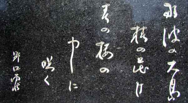 歌詞は全部で十五節あり、詩碑に刻んでいるのは、そのうちの第七節。書は野口雨情の直筆(大島山の雨情句碑には案内板がないため、中央公園詩碑を引用し、一部変更)。 |