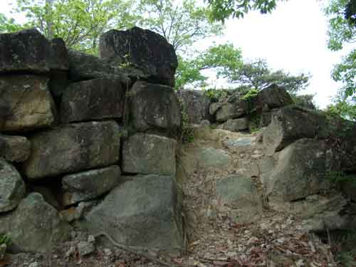 | 感状山城の南曲輪からU曲輪への石垣 |