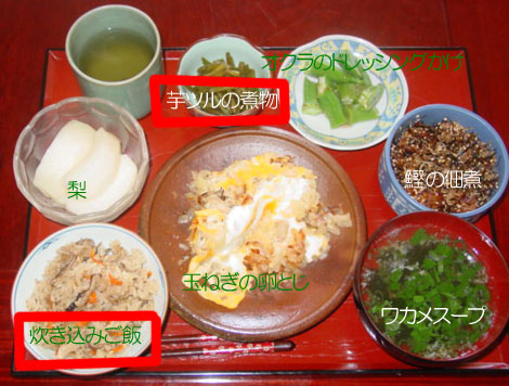 何か一・二品作れば、後は冷蔵庫の常備菜を並べるだけの簡単な 一人ご飯です。