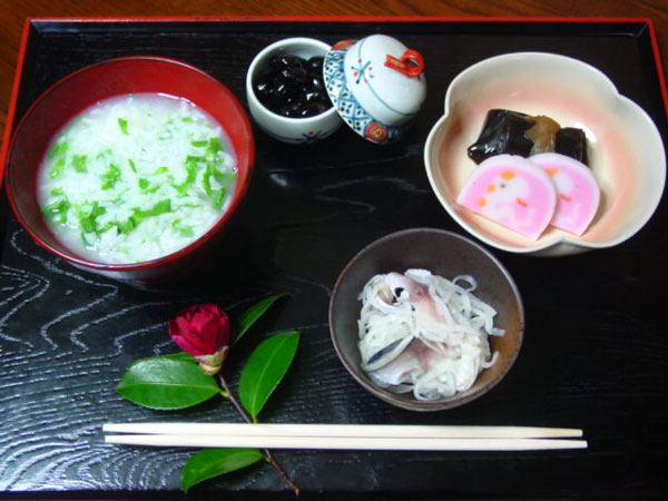 七草がゆ しめ鯖のなます 黒豆 昆布巻き・かまぼこ |