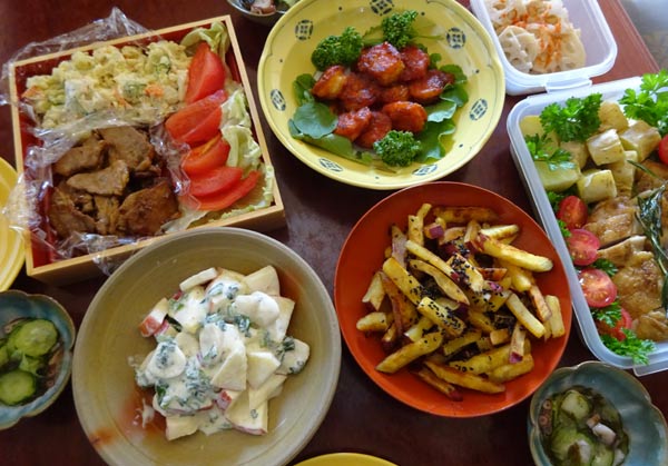 それぞれが適当に持ってきて並べると、「ホテルのバイキングに行ったみたいね」と 自画自賛です。