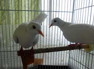 同じ籠の中で飼っていました。ある日、小さい方の鳩の首の羽が抜けているのに気が付きました。日光浴が足りないのかと窓際に籠を移動してみても一向に直りません。
