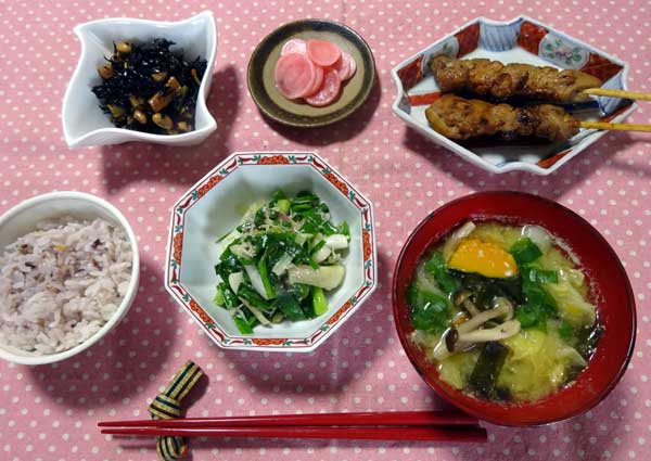 (128)4月「わけぎの味噌和え 」 わけぎの味噌和え 焼き鳥 ひじき煮 こかぶ酢漬 味噌汁 雑穀米ご飯 最後の 「圭介まつり」 おいでください 友人が 上郡の岩木という村で 地域おこしに町役場と協力して 頑張っています。 圭介まつりもその1つです。 ところが、今年でまつりを最後にすると言います。村の人々の高齢化で 体力的に難しくなってきたそうです。 私も何度もマジックで出演させていただきましたが、今年が最後です。 何とか知り合いを誘って参加して 盛り上げたいと思っています。