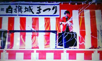 白旗城祭りにマジックで参加させていただきました。当日は風が強くて、まるで台風の中でしているようでした。色々な物が飛んでしまうわ小雨が降り出すわで私の手元は狂うわの散々でした。帰るときに館長さんが「来年も頼みますよ。」 と、言われましたが、強い風の場所でのマジックは考え物だと、今、思案しています。