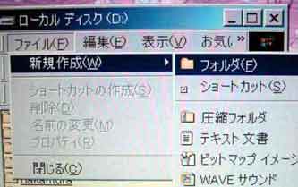 A「マイコンピュータ」をダブルクリック⇒「ローカルディスク(D)」をクリック⇒左上の「ファイル」をクリック⇒「新規作成」をクリック⇒「フォルダ」をクリック(写真A)⇒フォルダ名を「myphoto」とする。(フォルダ名は必ず半角英数にする)その「myphoto」というフォルダをダブルクリック⇒ウインドウを画面の左へドラッグ(写真B)