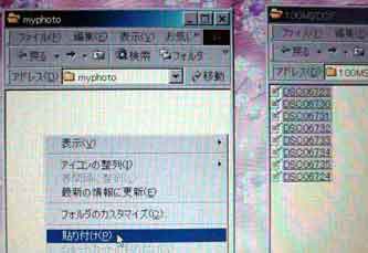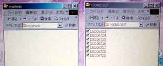 「myphoto」のウインドウを画面の左にドラッグ、デジカメのウインドウを画面の右にドラッグした写真 |