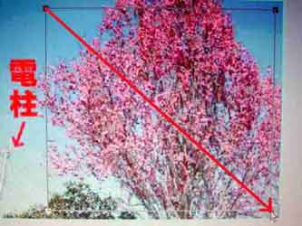 家の近くに見上げるような大きな花桃が今満開である。あわててデジカメで撮ったのがAの写真。ところが左隅に電柱が写っていた。ガッカリである。こういう時は師匠に教えてもらった切り取りの術だ!